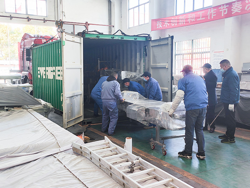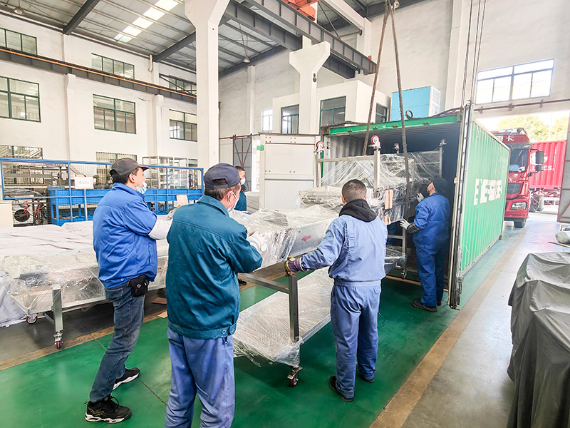 Our tailor-made large-scale food processing production line for Malaysian customers has been successfully manufactured and securely packaged, and is now in the stage of container loading and shipment. From precise equipment hoisting and collaborative team operations to container sealing and reinforcement, every step adheres to strict quality control standards to ensure the entire production line arrives safely in Malaysia and is efficiently delivered to the customer, demonstrating our global service capabilities and reliable delivery strength in the food equipment field.