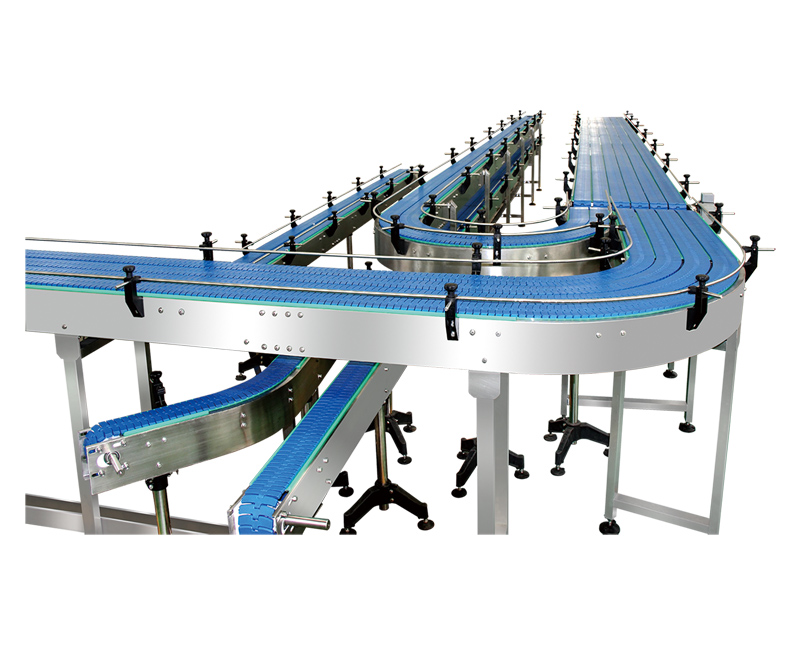 Plate chain conveyors are suitable for conveying heavy and large products. The products are conveyed by steel strips driven by chain. Plate chain conveyors are widely used in production lines for fridges, washing machines, air conditioners, sterilizers, water heater, auto-motors and bicycles, etc.